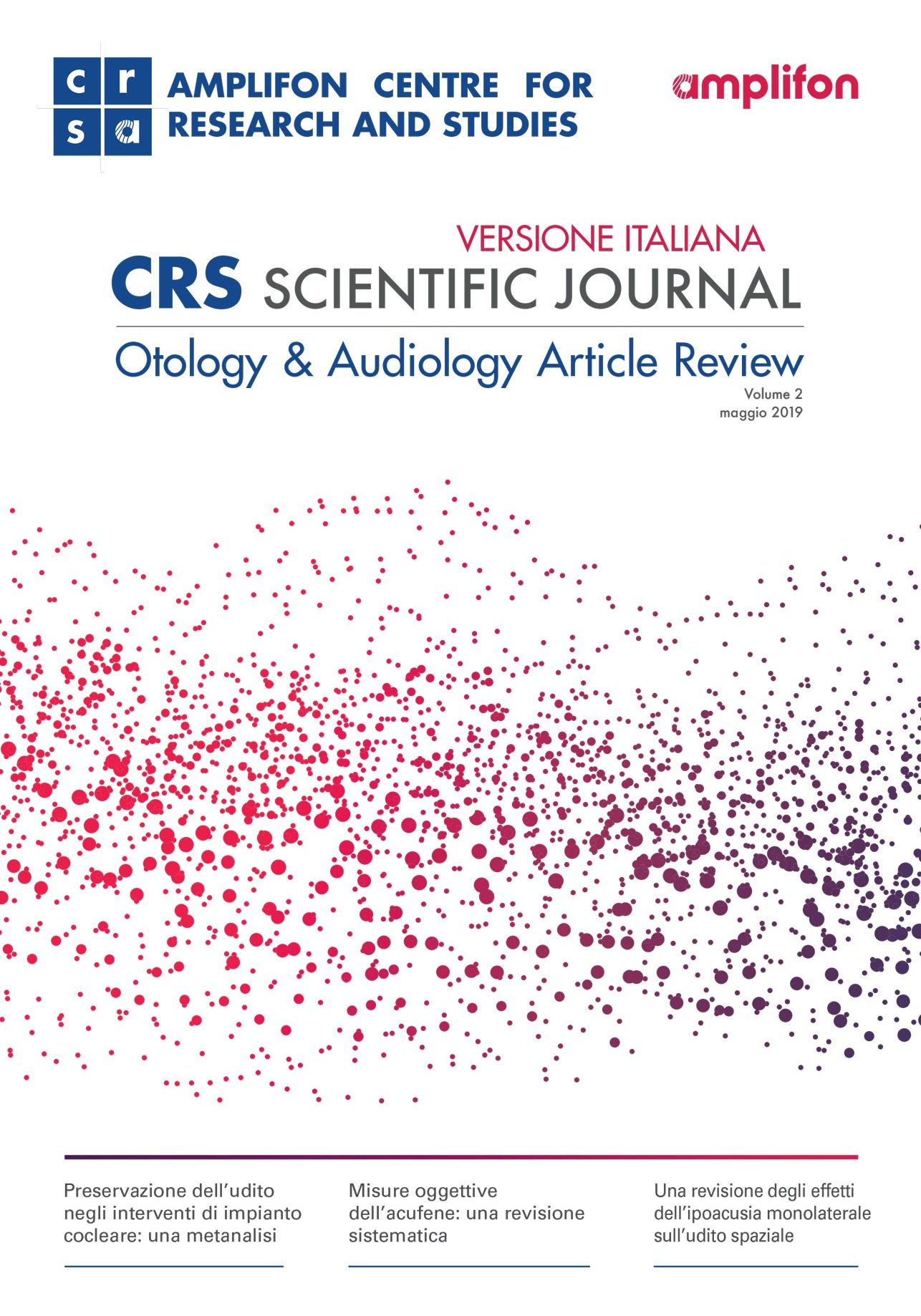 Esplora l'archivio del CRS Scientific Journal, la pubblicazione dedicata ai professionisti sanitari in ambito otorinolaringoiatria, audiologia, foniatria e audioprotesi.